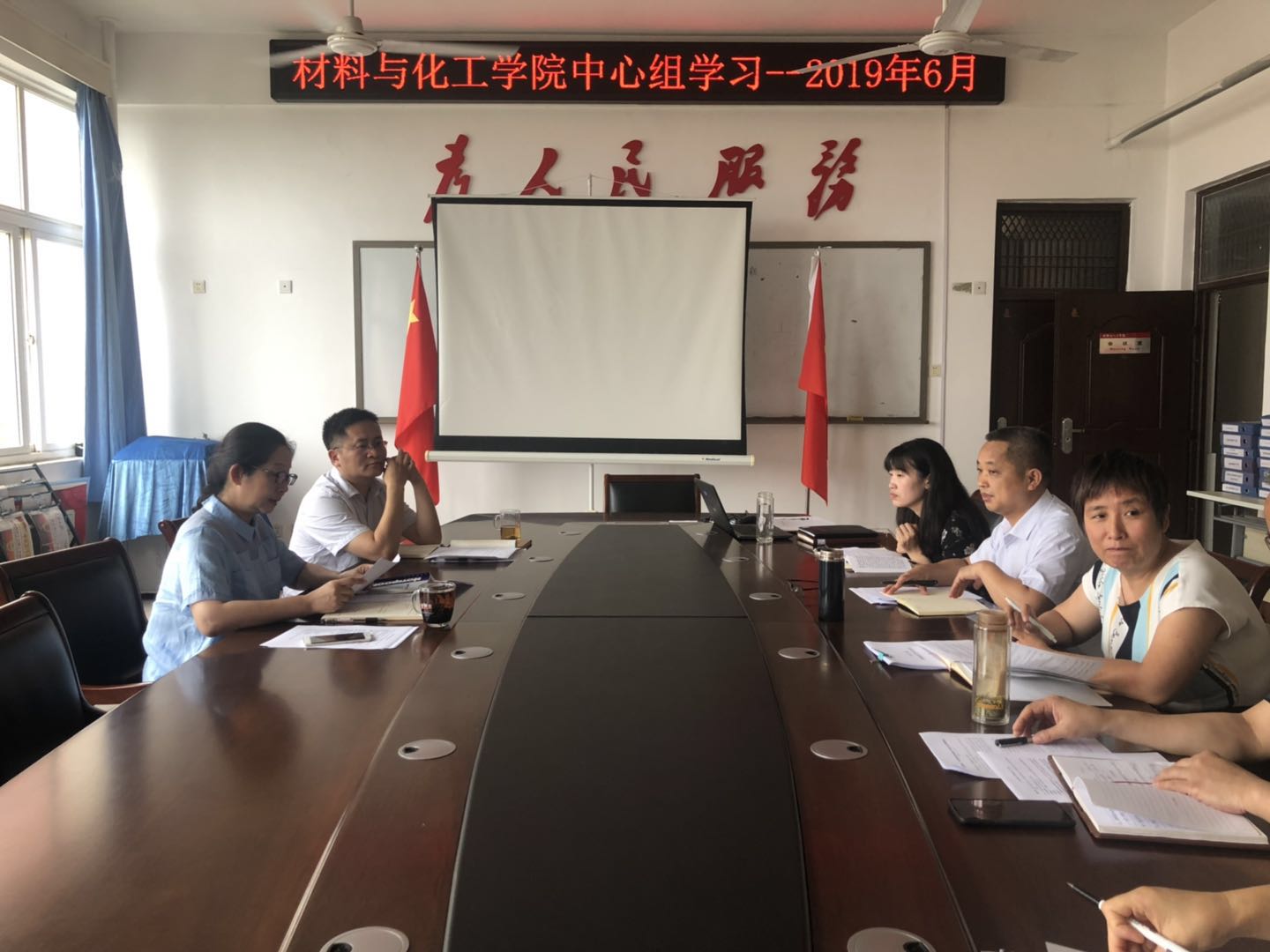 6月19日下午,材料与化工学院中心组召开会议,学习了习近平总书记在纪念五四运动100周年大会上的重要讲话精神。学院党政联席会成员参加了此次学习。会议由党委书记杨佩主持。