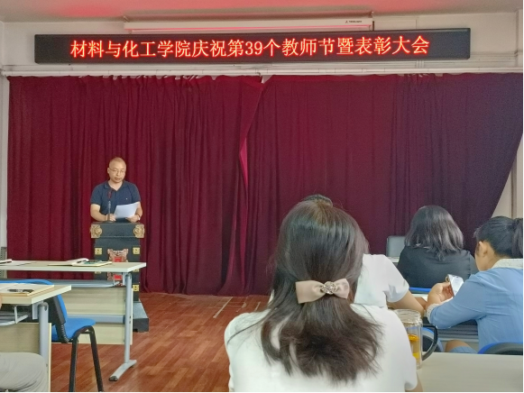 金秋送爽,丹桂飘香。9月5日下午,材料与化工学院在2号实验楼543会议室召开庆祝第39个教师节暨表彰大会,学院全体教职工参加会议,会议由学院党委副书记熊瑛主持。