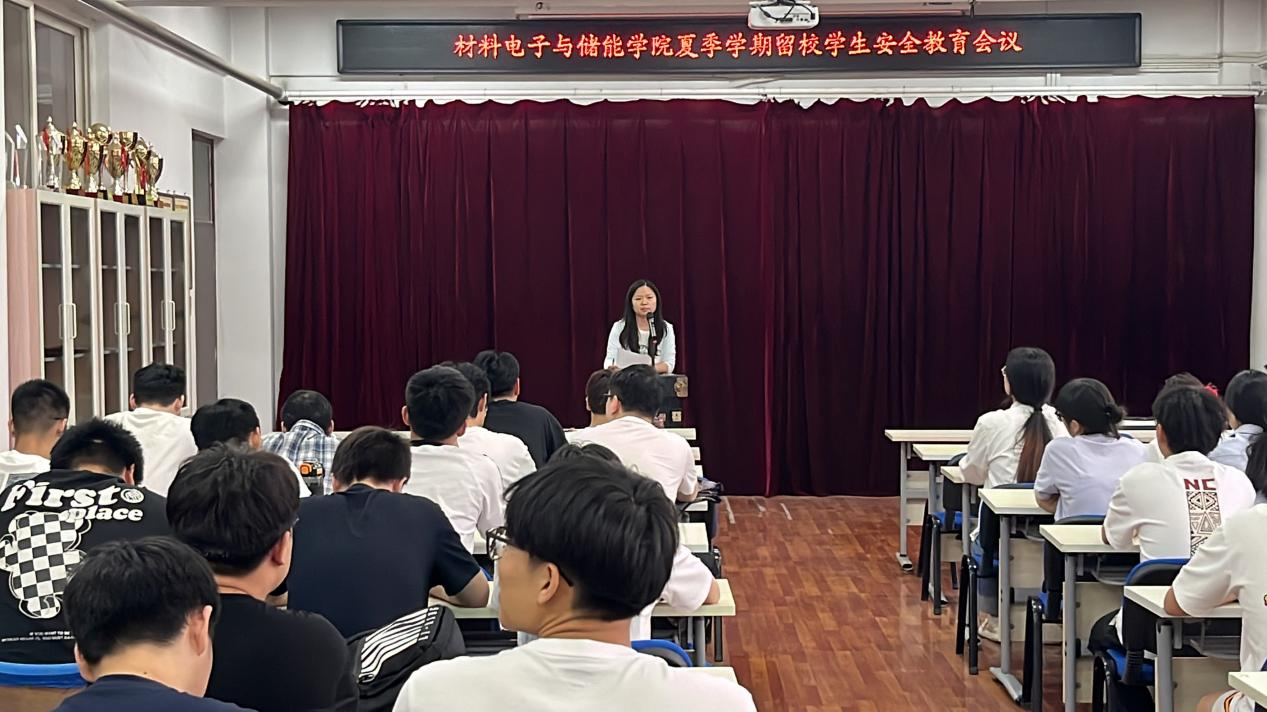 会上,刘瀚解读了学校关于夏季学期留校工作通知的精神及相关要求,从财物安全、交通安全、网络安全、消防安全、饮食安全和疾病预防等六个方面开展了安全教育,提醒学生要及时关注自己的财产和身体安全状态,建立留校学生小单元网格化管理体系,班级负责人、宿舍负责人要认真关注留校学生打卡及去向统计,严格执行离返校请销假、每日晚点名签到等管理制度。