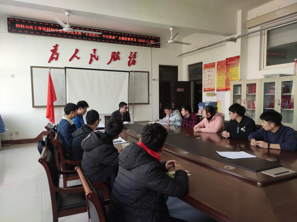 为进一步将“不忘初心、牢记使命”主题教育引向深入,增强党的意识和坚定理想信念,材料与化工学院各学生党支部2019年11月以两个阶段分别开展“不忘初心、牢记使命”理论学习。