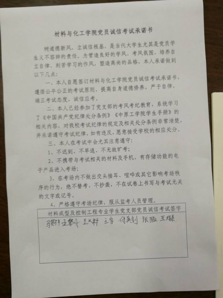 在教育大会上,党支部书记邢军阳要求全体党员、预备党员、入党积极分子要认识看待诚信考试,要在期末考试中发挥好先锋模范作用,当好排头兵、当好宣传队。邢军阳指出,全体党员、预备党员、积极分子要不断提高自己的党性修养,自觉抵制作弊抄袭等不良风气,带头遵守校规校纪,一方面以自己的良好形象影响带动身边同学拒绝舞弊、诚信考试,另一方面协助老师做好诚信考试的宣传教育,让更多人认识到违纪舞弊的危害,认识到诚信考试的重要,并向支部成员一一解读了WilliamHill官网对待考试舞弊行为的各种严厉处罚,会后支部全体成员在党员诚信考试承诺书上签了字。