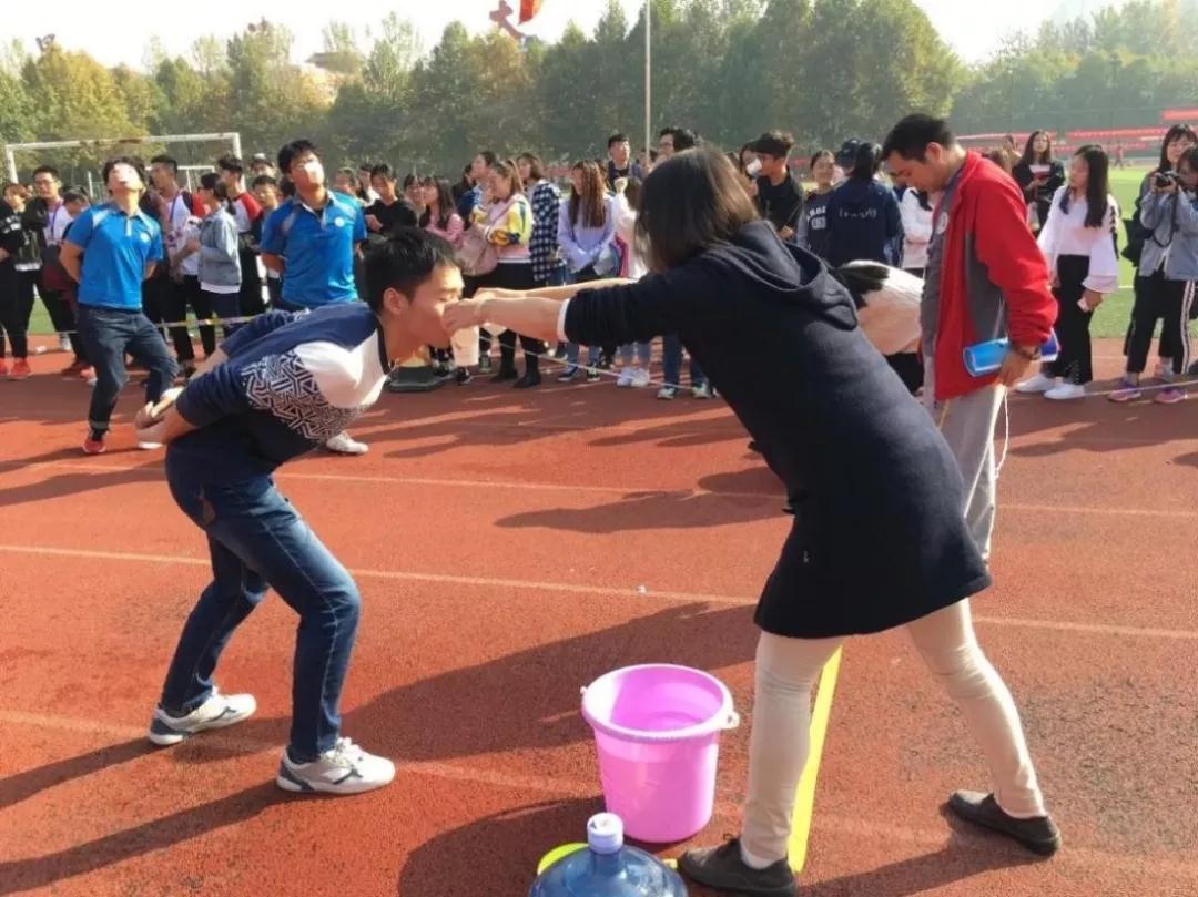 心理素质拓展运动会上,班主任与同学们团结一心,默契合作,用智慧和汗水赢得属于自己的胜利。