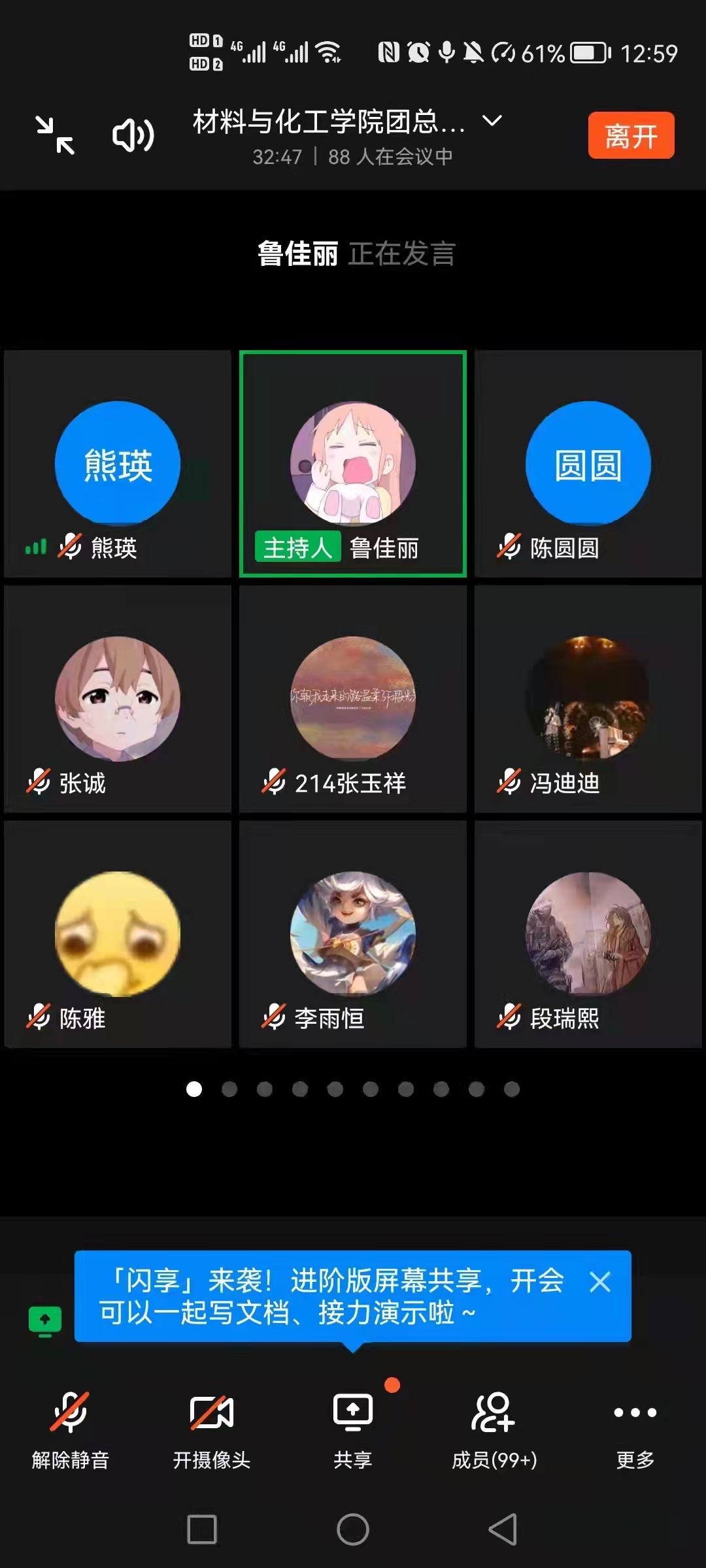 最后,熊书记作总结发言。她首先代表学院党委、代表李长林书记对全体学生会干部为学院的改革发展中做出的突出贡献表示衷心的感谢,对新调整配备的学生会干部表示热烈的欢迎。她勉励新一届学生会:要团结和凝聚广大学生,坚定信念,听党话、跟党走;要引导和带领广大学生,投身实践,增本领、长才干;要服务和扎根广大学生,鞠躬尽瘁,做好人、干好事。她希望全体学生干部:在学院党委和团委的指导下,继承和发扬材化学院优良传统,模范带头,履职尽责,遵纪守法,立好标杆,创新体制机制,激发动力活力,维护好广大学生的根本利益,为学院的发展稳定做出贡献,迅速成长成为一名让党放心、让同学们满意的学生干部。