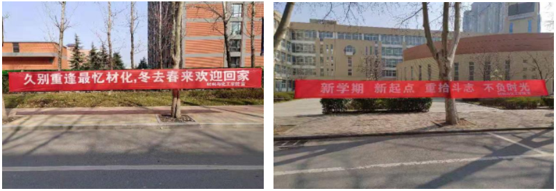 学院高度关注学生思想动态,开展困难统计,做好心理疏导。在校园道路两侧悬挂横幅欢迎同学们返校,为返校学生发放便利贴,写下新学期规划和美好祝愿。学生陆续返校后,学院领导分头走访学生宿舍,亲切询问假期生活,了解学生的生活状况,鼓励同学们明确学习目标,做好新学期规划,给予同学们新学期的问候与关怀。