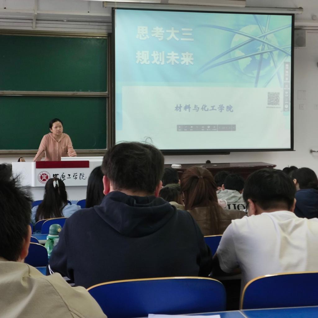 大三是大学生涯的转折点,为进一步加强班级管理,争创学风优良班集体,使每位大三同学能够静下心来,明确奋斗目标,珍惜大学时光,更能以饱满的热情和积极向上的精神风貌投入到大三的学习生活。10月24日下午,材料与化工学院辅导员刘瀚老师在3号教学楼107组织2021级本科生举办了“思考大三,规划未来”主题班会。