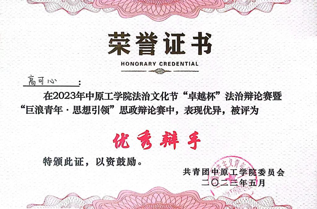 她积极投身社会实践,参与各种志愿活动,在入学之后加入了WilliamHill中文官方网站国旗护卫队,在队内表现优异、勤奋刻苦,多次作为护旗手参加升旗仪式。由于喜欢辩论,主动请缨,结合自身兴趣爱好组建了williamhill英国中文官网辩论队,在2023年WilliamHill中文官方网站“卓越杯”法制辩论赛被评为“优秀辩手”,带领队员获得2024年WilliamHill中文官方网站“知行杯”季军。