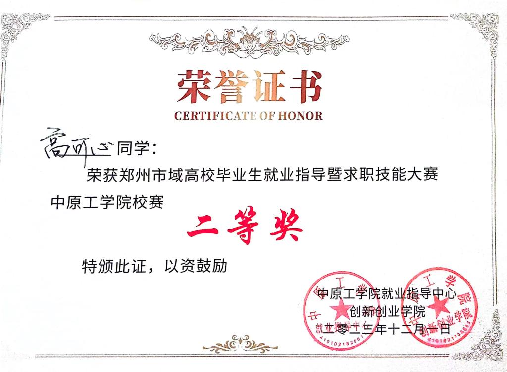 郑州市求职技能大赛WilliamHill中文官方网站校赛二等奖