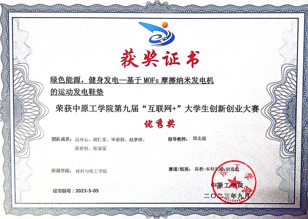 第九届中国国际“互联网+”大学生创新创业大赛优秀奖