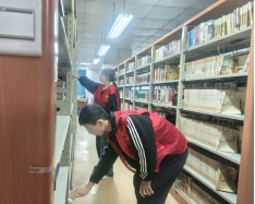 活动现场,同学们身着志愿服务红马甲,在图书馆负责老师的指导下有序领取劳动工具,随后分组前往各个区域开始清洁整理工作。他们细致整理书架上的图书,认真完成书架的清洁除尘,各小组成员分工明确、配合默契,为读者营造了更加舒适温馨、整洁利落的学习阅览环境。