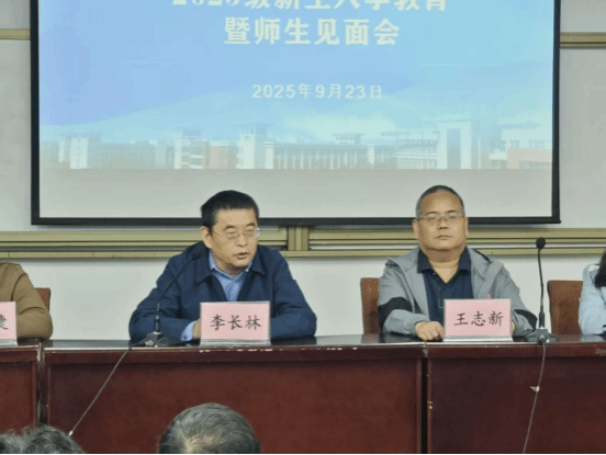 会上,学院党委书记李长林深情回顾了学校的光辉办学历程,深刻阐释了校训的丰富内涵,勉励新生们要铭记历史,传承精神。李长林对全体新生提出了三点殷切希望: 一是加强体育锻炼,铸就强健体魄;二是坚持博览群书,拓宽认知视野;三是注重修养品德,涵养高尚人格。李长林特别强调,要学会“吃亏”和“吃苦”,将其视为成长的磨刀石,在奉献与奋斗中实现自己的人生价值。