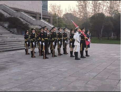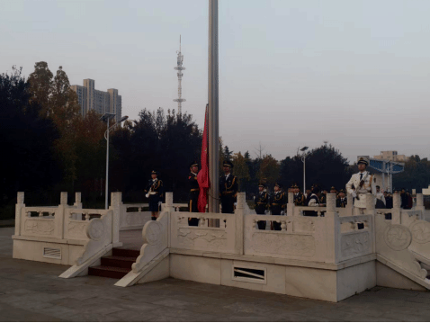 晨光熹微,薄雾轻笼,带着初冬的微凉,材电学院的学子们已身着统一服装,身姿挺拔地有序伫立在国旗台前。他们目光如炬,神情肃穆,静静等候着仪式的正式开启,年轻的脸庞上写满了对国旗的崇敬与对祖国的热爱。随着 “齐步走!” 的清脆嘹亮口号声划破晨空,学校国旗护卫队队员身着笔挺制服,肩扛鲜艳国旗,迈着铿锵有力、整齐划一的步伐,昂首挺胸护送国旗走向升旗台,每一步都彰显着青年学子的蓬勃朝气与坚定信念。