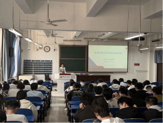 宣讲会上,刘瀚聚焦本科生最关心的五大核心政策模块展开系统解读。在家庭经济困难认定环节,详细说明认定标准、申请材料清单、班级评议与学院审核流程,强调 “公平、公正、公开” 原则,确保符合条件的学生应享尽享。针对奖助学金政策,明确各类奖学金的评审侧重与量化指标,细化国家助学金的申请条件与发放周期。在助学贷款与专项资助方面,刘瀚详细解读国家助学贷款最高额度标准、在校期间免息政策及毕业后还款计划,消除学生及家庭的经济顾虑;重点宣讲征兵入伍学费补偿代偿、退役复学专项资助等政策红利,激励有参军意愿的学生投身国防;同时介绍校内勤工助学岗位的设置类型、补贴标准及申请流程,引导学生通过劳动实现自我提升。