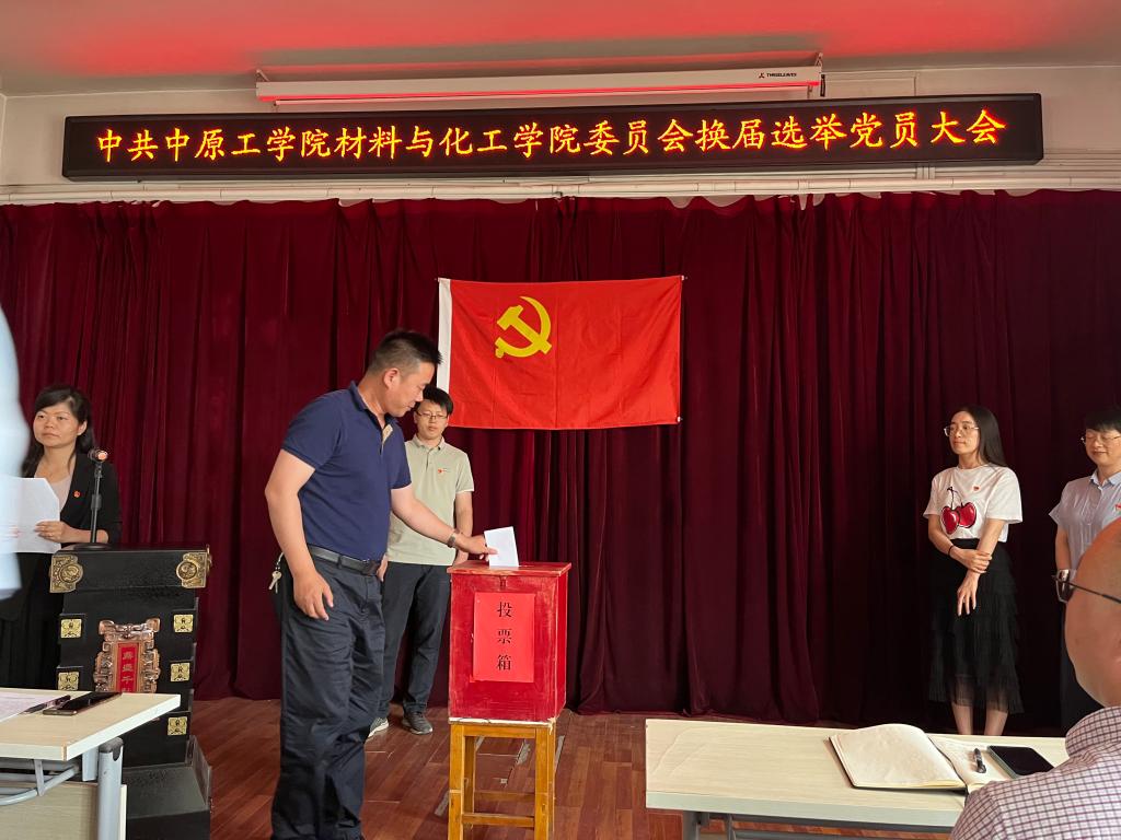 5月28日下午,在二号实验楼543会议室召开材料与化工学院党委换届选举党员大会,全体教师党员及学生正式党员120人参与会议,会议由学院党委副书记熊瑛主持。
