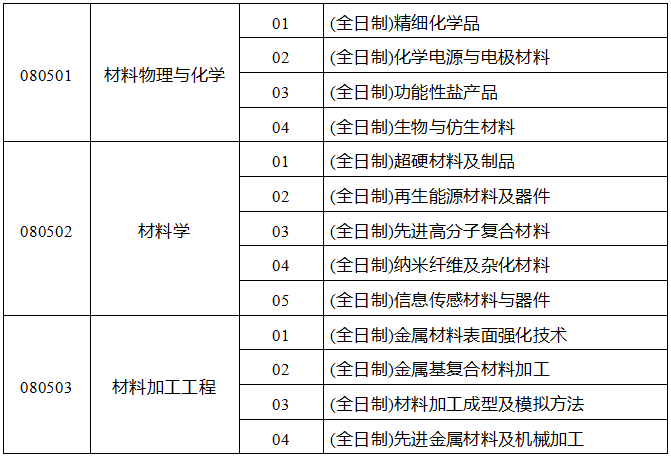2. 085600 材料与化工 专业学位硕士(8个研究方向)