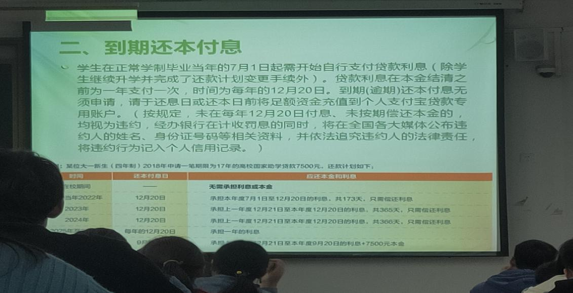 结合毕业生涉及诚信的事情——在校期间申请的国家助学贷款,邢老师鼓励有还款能力的学生在毕业前还款,既可以避免毕业后因忘记还款还息造成不必要的麻烦,也可以参与学校毕业之际发起的诚信活动,取得荣誉称号为自己增光添彩。