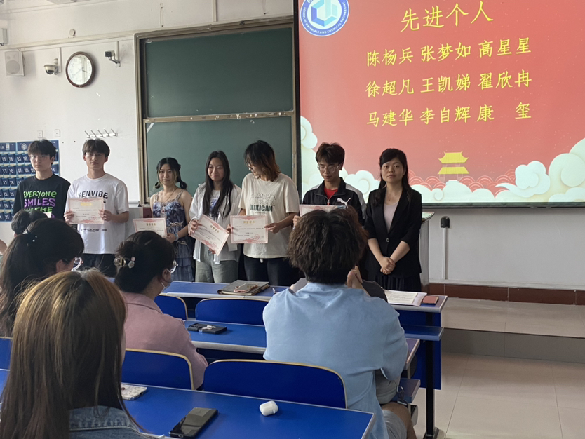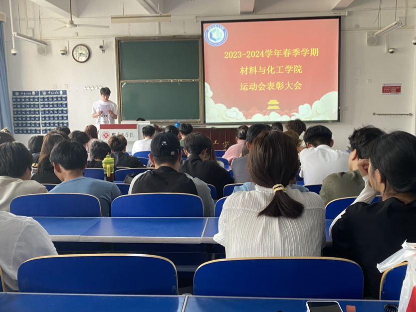 会议伊始,马建华介绍了材料与化工学院2024年在校运动会中的各项比赛成绩,宣读了先进个人和先进工作者名单,熊瑛副书记和张皖豫老师分别为获得先进个人和先进工作者的学生颁奖,并合影留念。