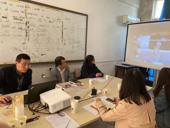 随后王乐军教授与焦明立教授、朱根兴博士及课题组研究生在酚醛纤维、蜜胺纤维制备及其性能,纤维产业化等方向进行了深入的探讨,王乐军教授针对相关问题,提出了下一步努力的方向。