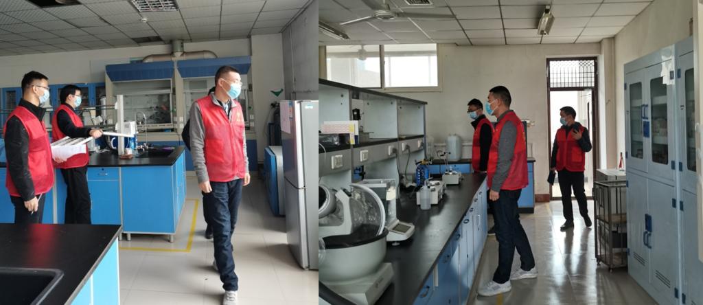 2022年11月3日上午,焦明立副院长带领黄权教授、李鹏宇老师、乔辉杰老师和贾少培老师到现场对学院各个实验室进行安全检查。王志新主任、刘英主任、李英华主任和刘永刚老师以线上视频的方式参与安全检查。