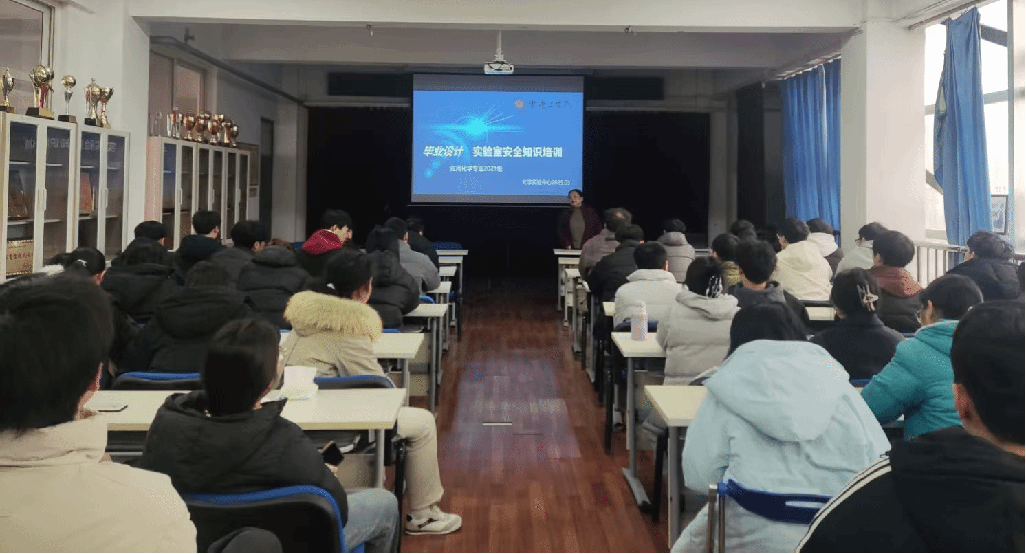 为确保新学期毕业设计工作的正常开展,williamhill英国中文官网化学实验中心于2025年3月5日在2号实验楼543会议室组织了一场面向应用化学专业2021级学生的毕业设计安全培训。