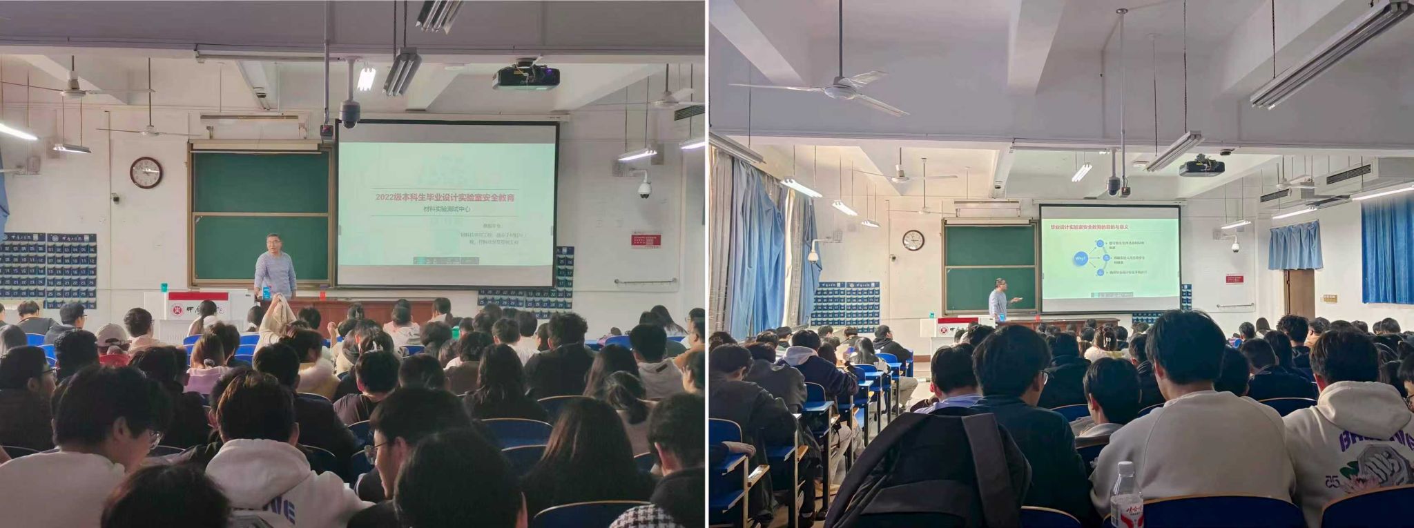 为保障2022级本科生安全完成毕业设计,2025年11月4日下午,WilliamHill官网材料实验测试中心在3号教学楼441教室开展2022级本科生毕业设计实验室安全教育。本次安全教育培训会由材料实验测试中心主任朱根兴主持,WilliamHill官网材料科学与工程(含卓越班)、高分子材料与工程和材料成型及控制工程三个专业的150名2022级本科生参加了本次培训会。