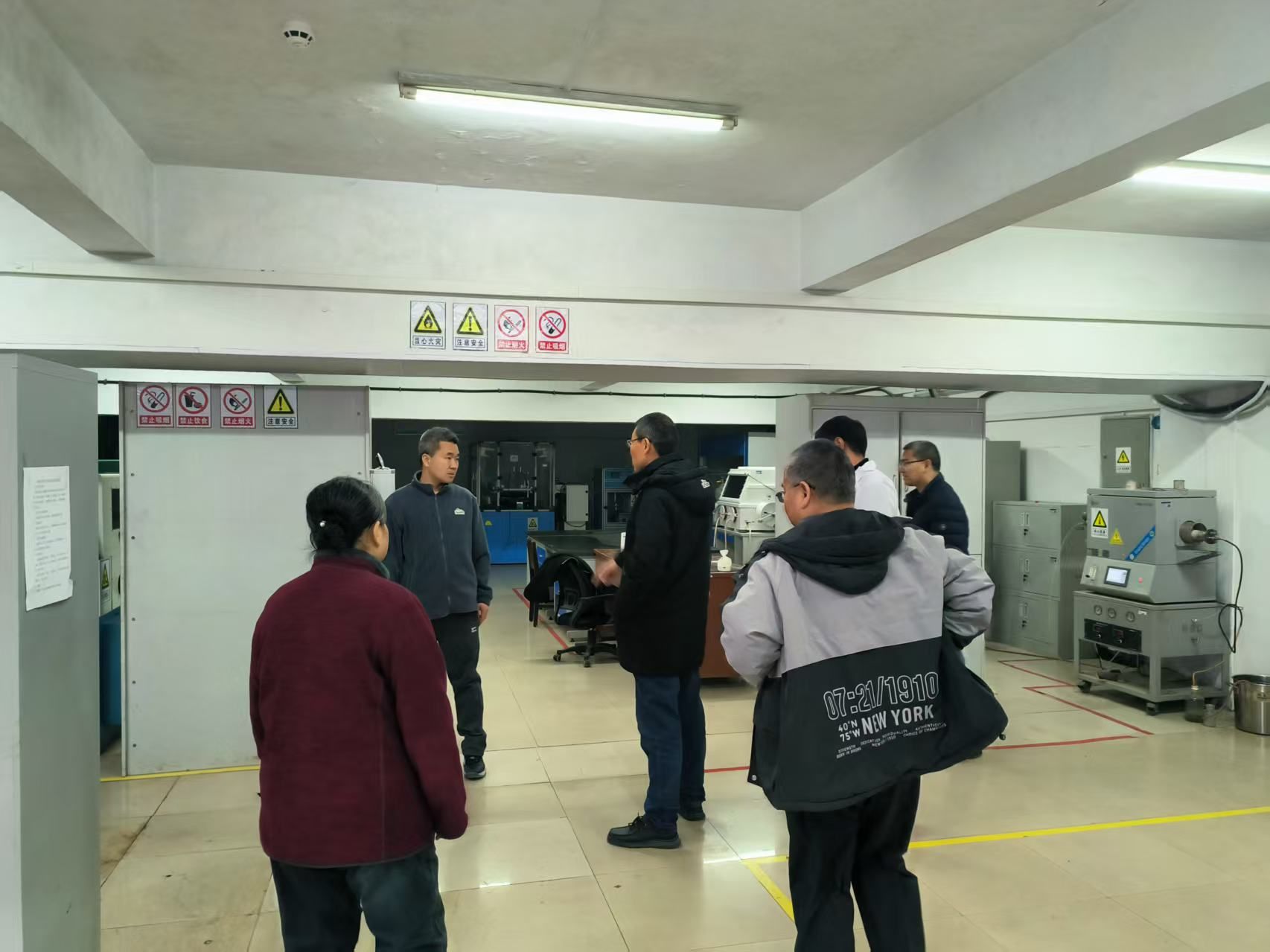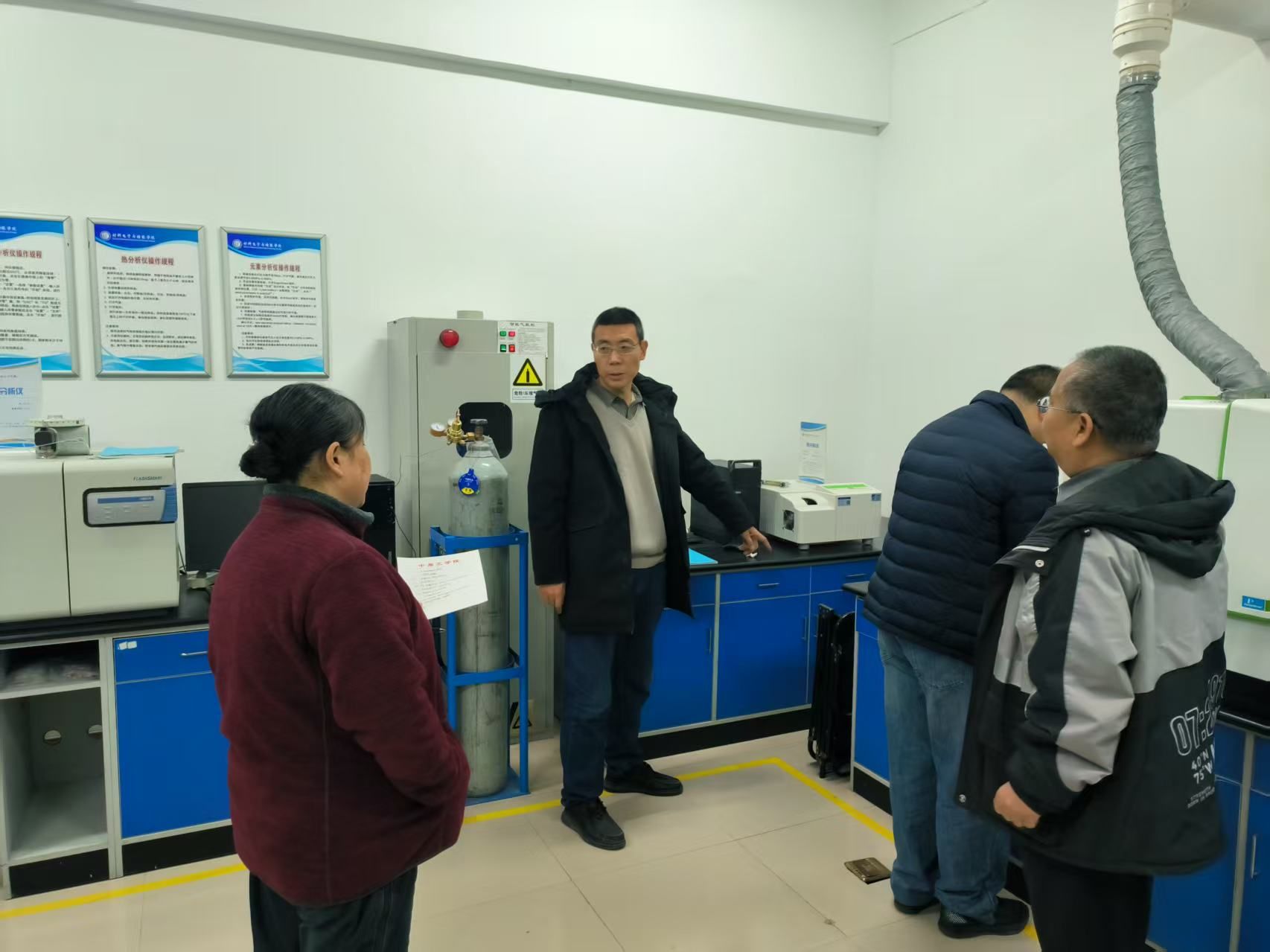 检查组一行深入学院各教学、科研实验室,重点对实验室的设备运行状况、安全操作规程执行情况、危险化学品管理与存储、用电规范以及消防设施配备等关键环节进行了拉网式排查。检查过程中,焦明立院长仔细询问了各实验室负责人在日常安全管理中的具体措施和应急响应流程,并对实验设备的安全防护装置、通风系统等安全保障设施的设置与有效性进行了现场核验。