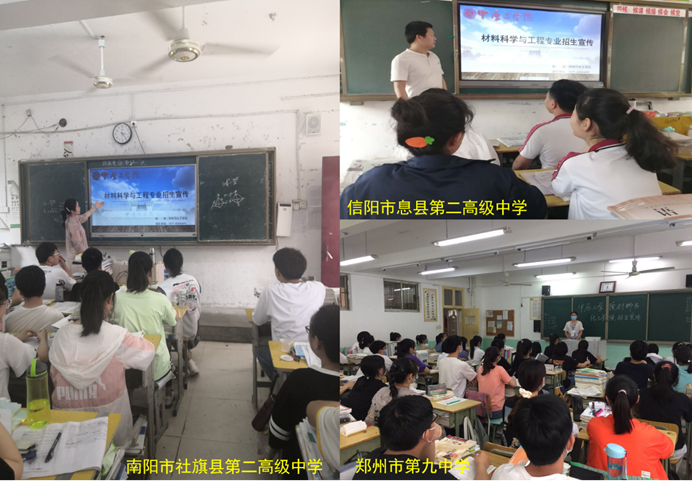 2020年6月,在全国新冠肺炎疫情防控有所缓和之际,WilliamHill官网材料科学与工程专业组织教师赴郑州市第九中学、南阳市社旗县第二高级中学和信阳市息县第二高级中学进行招生宣传。通过播放专业招生宣传PPT和口头宣传,向高三学生介绍了学校概况、学院概况、专业介绍、培养目标、毕业要求和奖助学金体系,并回答了部分学生关于招生政策和专业发展前景等问题。
