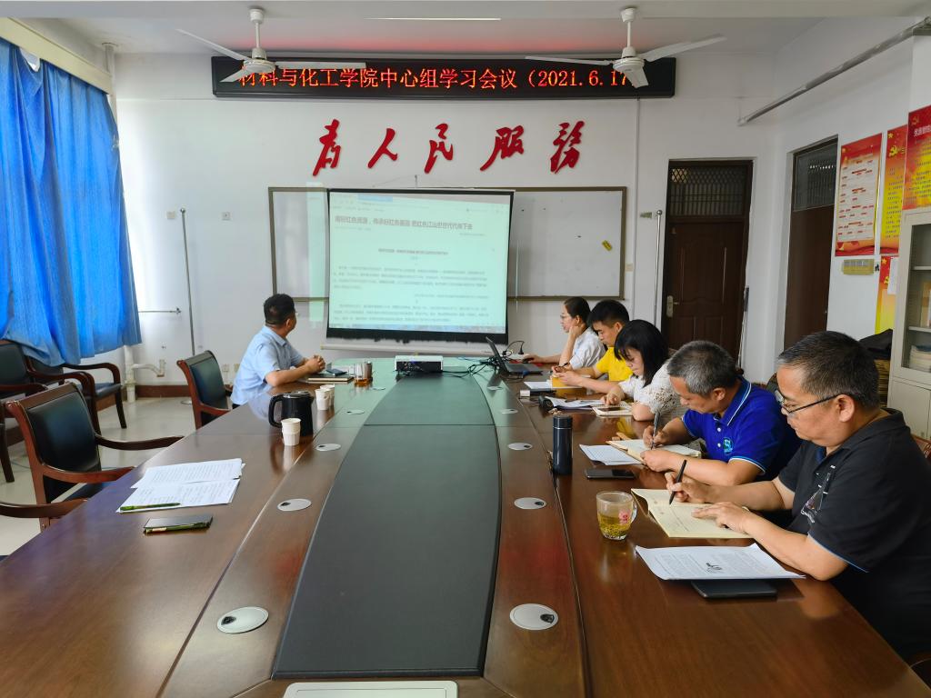 617日上午,材料与化工学院领导班子成员在526议室召开理论学习中心组学习会议,学习内容为“用好红色资源,传承好红色基因 把红色江山世世代代传下去”。学院党委书记杨佩主持会议。
