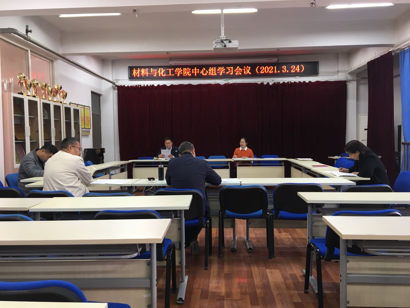 3月24日上午,材料与化工学院在543会议室召开党委理论中心组学习会议,集中学习了习近平:学党史悟思想办实事开新局 以优异成绩迎接建党一百周年。党委书记杨佩主持会议。