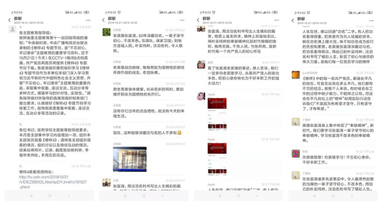教工七支部主要通过各自观看电视、网络直播的方式,在支部微信群中讨论《榜样4》的观看情况和观看感受。各位党员在微信群中积极发言,表示这些先进人物是我们每一个党员学习的好榜样。