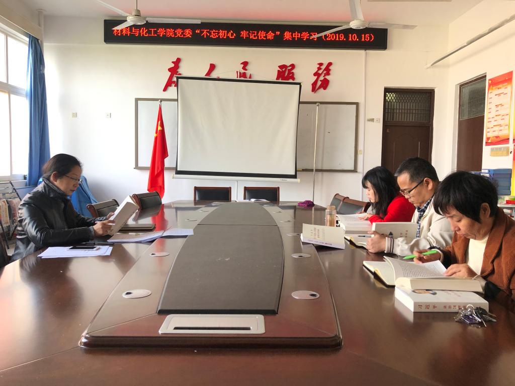 10月15日,材料与化工学院党委理论学习中心组召开“不忘初心、牢记使命”主题教育第四次集中学习。杨佩书记主持本次会议。